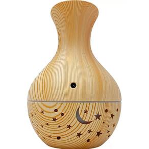 Umidificador aromatizador ultrasonico tulipa estrelada madeira clara usb com led colorida
