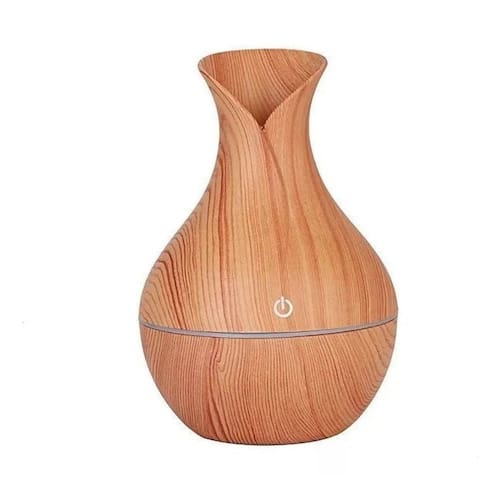 UMIDIFICADOR AROMATIZADOR ULTRASÔNICO TULIPA MADEIRA CLARA USB COM LED COLORIDA
