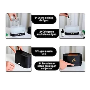 Umidificador aromatizante com chamas simuladas O difusor de aromas, umidificador e luminária, é um mini eletrodoméstico necessário e mais que útil para ser ter no dia a dia. Ele promove bem estar e tem benefícios incríveis que podem agregar na sua qualidade de vida. É produto portátil, pequeno e que não ocupa muito espaço. Tem um formato elegante e sofisticado, seu vapor imita uma chama que é visualmente bonito e decorativo. Possui duas opções de cores que podem ser usadas como você preferir. Com a função de temporizador você define o tempo de trabalho, seu modo de alimentação é por meio de usb uma conexão universal e com muitas possibilidades de carregamento, seja por um adaptador de celular, notebook ou powerbank. Características: - luminária de led: duas cores para serem usadas. - melhora a qualidade do ar; - reduz o , ansiedade e nervosismo; - pequeno, portátil e que não ocupa espaço. Funções que vão melhorar o seu dia a dia e a sua qualidade de vida Difusor: difusor de óleos essenciais, que ajudam na melhora de diversos quadros, como ansiedade, insônia e outros. Liberando vapor e a essência. Aromatizador: você pode usar se preferir aromatizadores a base de água, com o intuito somente de perfumar o ambiente ou fazer tratamentos de aromaterapia que podem promover melhoras na sua qualidade de vida. Umidificador: a função de umidificador tem como objetivo melhorar a sua qualidade de ar, é ideal e recomendado para ambientes muitos secos ou lugares fechados. Ele libera um vapor frio que umidifica o ar tornando o confortável de respirar. Luminária: possui duas cores de luzes, laranja e azul que podem ser usadas como luminária ou decoração de ambientes, agregando valor ao mesmo. Aplicações: sala de estar, como meio decorativo, umidificador, aromatizador. Ótimo item para ter no quarto como luminária. Perfeito para dar de presente a amigos e familiares. Atenção: a capacidade máxima do reservatório de água é de 230ml. Há uma linha que indica essa capacidade, não coloque mais água do que o necessário. Ao fazer isso, você pode comprometer a funcionalidade do produto. E promover vazamentos que podem danificar a seu móvel. Uso dos botões: Botão power: um clique: ligar o produto. Clique novamente: saída de vapor. Clique e segure: muda de cor. Dois cliques seguidos: função de temporizador. Especificações: Potência: 4.5w Entrada: dc5.0v/2.0a Tamanho: 172x82x116mm Capacidade: 230ml Volume de spray: 20-30ml/hr Material: abs/pp/pcba Lista de embalagem: 1x aromatizador 1x cabo usb tipo c 1x manual de instrução Marca: Não Informado Ean: 7895277450626