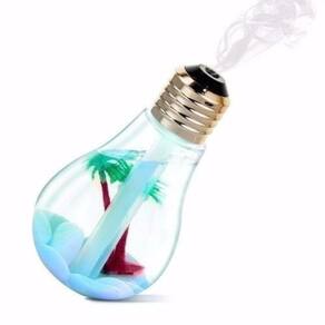 Charmoso umidificador de ar em formato de lâmpada e decoração de praia.