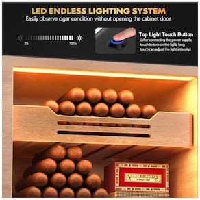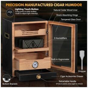 O Humidor de Cigars é a solução perfeita para manter sua coleção de charutos de qualidade. Com capacidade para armazenar aproximadamente 100-150 charutos, possui três camadas de armazenamento e uma gaveta de acessórios personalizável. Equipado com um sistema de iluminação LED e um medidor de umidade frontal, este humidor garante que seus charutos estejam sempre em condições ideais para fumar. Feito com materiais de alta qualidade, incluindo madeira de cedro espanhol e vidro temperado, este humidor é um presente elegante e sofisticado para qualquer amante de charutos. Aproveite a experiência única de fumar um charuto perfeitamente armazenado com o Humidor de Charutos Marca: Não Informado