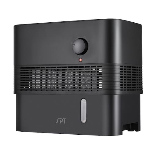 - A umidificação evaporativa com circulação de ar atrai o ar seco e empurra o ar úmido e frio de volta para a sala