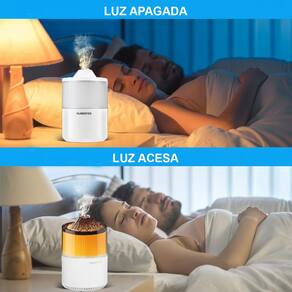 Com um design único que imita um vulcão em erupção, a névoa se eleva suavemente enquanto a iluminação cria um show de cores. Você pode escolher usar apenas a luz, apenas o vapor ou os dois ao mesmo tempo, tudo para combinar com seu momento de descanso, leitura, meditação ou até para dormir melhor.