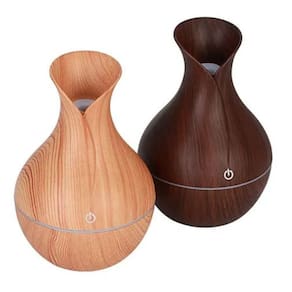 Umidificador Ultrassônico Aromatizador Ambientes LED Portátil USB Vaso Madeira Difusor 130 ML