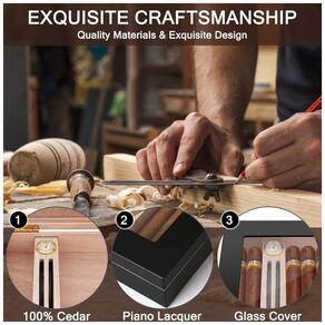 Especificações: Dimensões do produto: 23,8 x 5,1 x 18,3 centímetros; 1 quilograma, Fabricante: Bald Eagle Cigar Store U.S., Cor: Preto, Material: Madeira de Cedro, Característica Especial: Tampa de Vidro, Estilo: 10-15 Charutos Marca: Não Informado