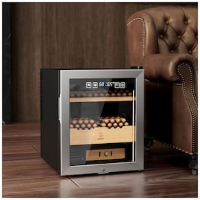 Aprimore sua coleção de charutos com o Gabinete de Charutos Elétrico de 50L da MIUGUYO. Com capacidade para até 350 charutos, controle preciso de temperatura (15 a 22°C) e umidade (60-75%), este gabinete possui um sistema de recirculação de água automaticamente, garantindo a reciclagem do condensado. Com circulação de ar 360°, baixo nível de ruído (38 dB) e luzes LED, o gabinete mantém seus charutos em condições ideais. Feito de cedro espanhol, que aromatiza, envelhece e protege os charutos. Um presente especial para apreciadores de charutos.