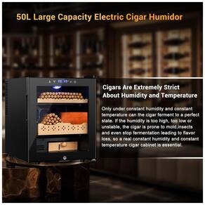 Com elegância e capacidade ampla de 50 litros para até 300 charutos, este umidor elétrico de mesa é a solução definitiva para armazenar sua coleção robusta. Tenha controle preciso com configurações de temperatura e umidade controladas por toque, mantendo climas internos entre 15-22°C e níveis de umidade de 60 a 75. Experimente a potência da tecnologia de refrigeração de semicondutores em nosso umidor elétrico, garantindo operação silenciosa, eficiência ecológica e preservação ideal de sua coleção de charutos. Aproveite o sistema de resfriamento de ar que facilita a circulação natural, evitando discrepâncias de temperatura e protegendo contra o mofo local, preservando a integridade de suas coleções. Projetado para conhecedores, desfrute da funcionalidade contínua do nosso umidor elétrico, com tela LED digital, trava de segurança e prateleiras de cedro espanhol, unindo sofisticação e funcionalidade para o aficionado moderno.