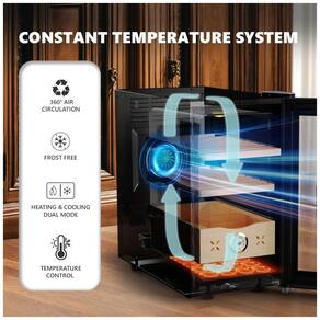 O Humidificador Elétrico de Charutos EUHOMY oferece uma solução completa com funções de refrigeração e aquecimento. Com capacidade de 25 litros e 3 camadas de armazenamento, incluindo madeira de cedro espanhol, este umidor proporciona um ambiente inteligente para seus charutos. O display digital de vidro duplo, assegura a vedação superior da porta, enquanto o sistema de circulação de ar de 360 graus mantém a umidade adequada de forma uniforme. Além disso, seu funcionamento silencioso torna-o ideal para qualquer ambiente.
