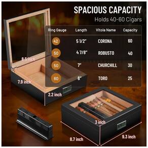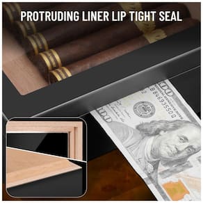 Desfrute de um interior de cedro genuíno que, devido ao seu aroma natural e capacidades de regulação de umidade, mantém o sabor, aroma e qualidade dos seus charutos por longos períodos. Esta umidora está devidamente selada, garantindo que a umidade interna seja totalmente bloqueada, criando um ambiente estável para o envelhecimento. O umidificador de gel personalizado com estrutura ranhurada proporciona múltiplas direções de fluxo de umidade. Basta adicionar água destilada ao gel, que liberará umidade lentamente ao longo do tempo. Além disso, pode ser utilizado como divisor, mantendo sua coleção organizada. O higrômetro digital preciso, com sensor aprimorado, garante medidas exatas atualizadas a cada 10 segundos, fornecendo informações precisas sobre o ambiente interno da umidora. Armazena até 60 charutos de diferentes tamanhos, apresentando um acabamento estético moderno preto que combina com qualquer estilo, além de vir em uma embalagem para presente. Sem dúvida, um presente maravilhoso para qualquer amante de charutos.