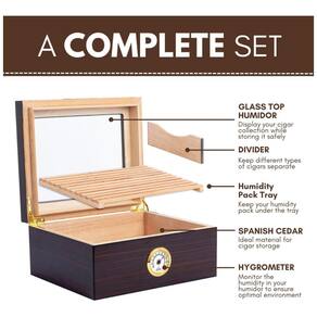 Feito à mão com a fina madeira genuína de cedro espanhol, este humidor da marca Mantello Cigars é ideal para armazenar até 2550 charutos. Apresenta um acabamento rico, tampa de vidro e design elegante, mantendo seus charutos frescos e em condições perfeitas.