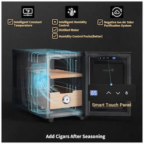 Desfrute de um ambiente de armazenamento ideal para seus charutos com o umidor Elétrico KingChii 16L. Equipado com tecnologia eletrônica de semicondutores, mantém uma faixa de temperatura constante entre 64 e 72 graus, emite baixo ruído de 40 dB e possui sistema de circulação de ar 360º livre de gelo. O gabinete possui prateleiras de cedro espanhol de alta qualidade que emitem um aroma natural, mantendo a umidade e evitando o ressecamento e mofo dos charutos. A porta de vidro temperado de dupla camada é isolada termicamente e de fácil limpeza. Além disso, o controle de toque eletrônico proporciona fácil operação. Este umidor é o presente perfeito para homens sofisticados, podendo ser colocado na sala de estar, escritório, quarto ou adega. Surpreenda seu pai ou amigos com um presente de aniversário, Dia dos Pais ou de Ano Novo.