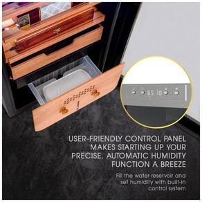 MANTENHA SEUS CHARUTOS EM CONDIÇÕES PRISTINE O resfriador de charutos, aquecedor e umidificador 3 em 1 mantém a temperatura e a umidade precisas para preservar, melhorar e prolongar a vida útil de seus charutos favoritos. Ele inclui um sistema de resfriamento de compressor de vibração zero silencioso, higrômetro integrado, painel de controle digital de temperatura e umidade relativa, e oferece um amplo espaço de zenamento para até 400 charutos do tamanho de Churchill.
