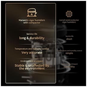 Tecnologia Avançada de Resfriamento por Compressor: Ao contrário dos modelos termelétricos tradicionais, este umidor de charutos conta com resfriamento por compressor de última geração, garantindo estabilidade superior de temperatura e desempenho ideal em diferentes condições ambientais. Oferece resfriamento mais confiável para controle constante de temperatura, perfeito para o armazenamento de charutos a longo prazo.