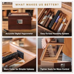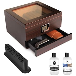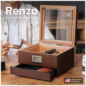 Especificações: Dimensões do Produto: 21,59 cm Diâm. x 22,91 cm Larg. x 13,69 cm Alt., Número do Modelo: CE-HUMIDOR-GLASS-1, Departamento: Unissex, Pilhas: Requer 1 pilha CR2, Fabricante: CASE ELEGANCE, Característica Especial: Silencioso, Cor: Marrom Escuro, Modo de Operação: Manual Peso:1,32 kg Marca: Não Informado
