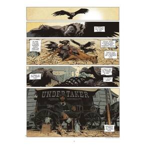 Conheça Jonas Crow, o papa-defunto mais casca-grossa do Velho Oeste e o maior sucesso dos quadrinhos franceses de faroeste desde Blueberry! No oeste, a morte está sempre à espreita. Traições, doenças e tiroteios ceifam a vida das pessoas sem nenhum aviso. Cuidar de seus corpos e enterrá-los com decoro é a tarefa de Jonas Crow, um coveiro ambulante que viaja de cidade em cidade oferecendo serviços funerários a preços acessíveis, acompanhado de um carismático abutre, que o segue por todo canto, e assombrado por seu misterioso passado como militar na Guerra Civil. Contratado por um endinheirado magnata da mineração para cuidar de seu corpo, horas antes de seu suicídio, Jonas acaba sendo envolvido em um verdadeiro ninho de cobras, perseguido pela cavalaria de um lado e por uma turba de mineradores furiosos do outro. Nessa mórbida corrida contra o tempo, ele contará com a ajuda de Rose Prairie, uma religiosa governanta inglesa que abomina o crime e a desordem, e Lin, uma senhora chinesa de sangue frio e várias surpresas na manga. Parceria entre o ovacionado roteirista francês Xavier Dorison com o fenomenal artista Ralph Meyer e a colorista Caroline Delabie, Undertaker vem sendo aclamado pela imprensa europeia como o autêntico sucessor de Blueberry e um dos melhores faroestes em quadrinhos já concebidos! A obra já venceu os prêmios Saint-Michel, Le Parisien e Fnac, e segue ganhando admiradores onde é publicada. Com uma sinergia rara e um talento para desenvolver personagens complexos, os três autores se inspiram em alguns dos grandes mestres do “bangue-bangue” ao mesmo tempo em que criam uma HQ única e revigorante, de extraordinária maestria visual e narrativa. Um dos títulos europeus mais elogiados dos últimos anos chega ao Brasil com todo o capricho da editora Pipoca & Nanquim! Esta edição de peso compila seis álbuns da série, publicados originalmente pela editora Dargaud entre 2015 e 2021, em um acabamento impecável, com capa dura, formato europeu grande (23 x 31 cm) e 332 páginas coloridas no papel couchê de alta gramatura. Obrigatório para todo fã de quadrinhos.