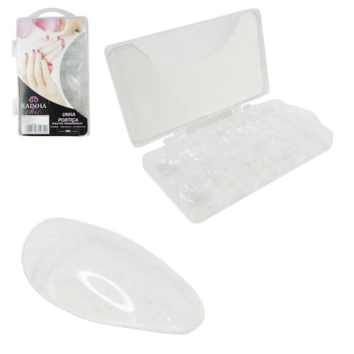 Informações adicionais: Ean: 7908412700392 Validade: indeterminada Tamanho aproximado do estojo: 15x8,5cm Peso aproximado: 60g Tipo de produto: kit de unhas postiças stiletto para mãos rainha chic com 100 peças no estojo Cor: transparente Composição: plastico e acrilico Marca: Não Informado Ean: 7908412700392