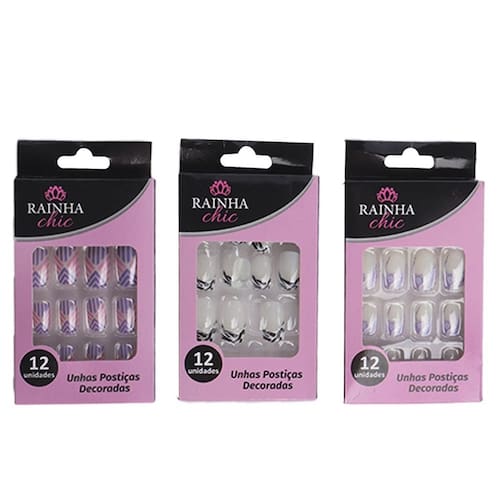 Unhas Postiças 12 Peças Estampas Unhas postiças longas, tem aparência natural e ajuste flexível que encaixa perfeitamente em sua unha. Com tamanhos diferentes, essas belezinhas são feitas de material altamente resistente e de excelente qualidade, alonga e dá maior beleza em fino acabamento.\nEspecificações: Marca : R&C Tipo de material : Plástico Cores ou Estampa : Dimensões do Produto : 13 X 7 X 1,5 CM Dimensões da Embalagem : 13 X 7 X 1,5 CM Peso Bruto (Gramas) : 0.012 Para unhas lindas de maneira rápida fácil e confortável. Disponível em estampas.;
