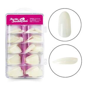 Contém: 01 - Caixa Acrílica com 100 Unidades de Unhas Postiças Formato Almond Curta, Leitosa, Arte Sedução