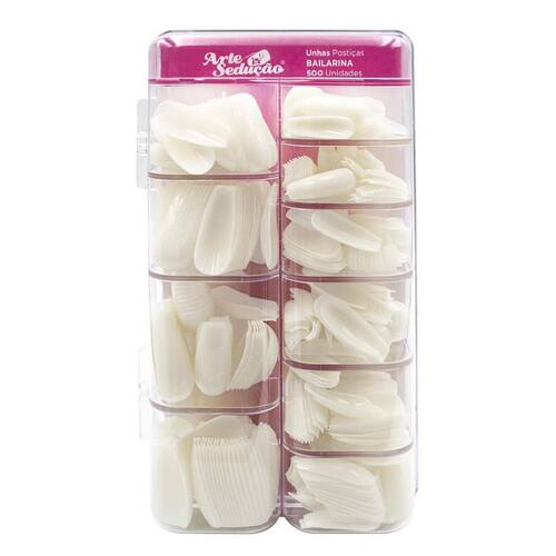 01 - Caixa Acrílica com 500 Unidades de Unhas Postiças Formato Bailarina, Arte Sedução