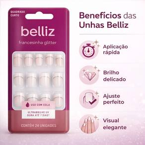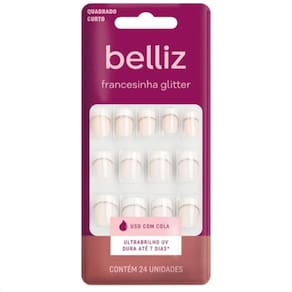 Unhas Postiças Belliz Francesinha Glitter Quadrado Curto Com 24 unidades Cód.:1206