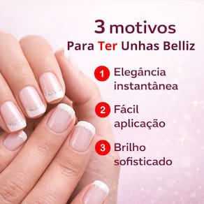 Transforme suas mãos com as Unhas Postiças Belliz Francesinha Glitter Quadrado Curto. Ideal para quem busca praticidade e um toque de elegância instantânea, este conjunto de 24 unidades oferece um visual sofisticado com o clássico estilo francesinha, realçado por um delicado brilho de glitter. Perfeitas para adicionar charme ao seu dia a dia ou para complementar um look especial, proporcionando unhas impecáveis em minutos.