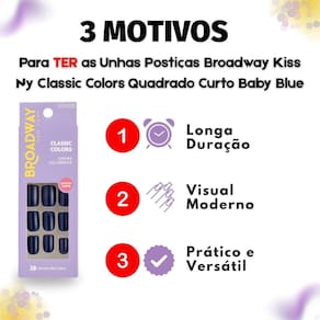 Unhas Postiças Broadway Kiss Ny Classic Colors Quadrado Curto Baby Blue Bco02b