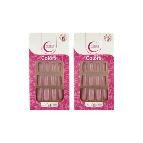 Unhas Postiças Fhaces Colors Rosa Flash Ref U3052- Kit C/2Un