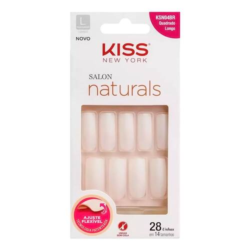 Unhas Postiças Kiss New York Salon Naturals Tamanho Quadrado Longo KSNO4BR com 28 Unidades