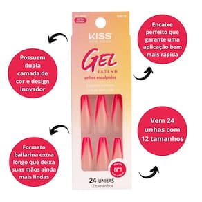 As unhas postiças possuem dupla camada de cor e design inovador. No formato bailarina extra longo deixam suas mãos ainda mais incríveis. Sem deixar de lado o conforto possuem encaixe perfeito que garante uma aplicação bem mais rápida. O resultado que só uma unha KISS NEW YORK pode proporcionar. As unhas postiças da Kiss New York possuem tecnologia de encaixe perfeito, tornando a aplicação das 24 unhas muito mais rápida e trazendo mais conforto na sua utilização.