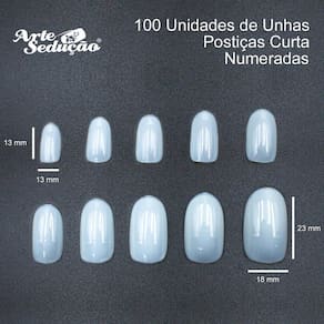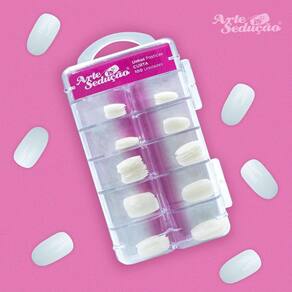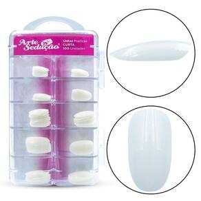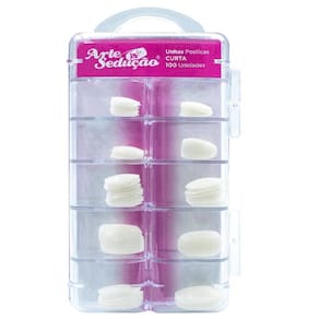 01 - Caixa Acrílica com 100 Unidades de Unhas Postiças Formato Natural Curta, Arte Sedução