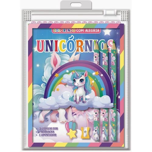 Descubra a magia da criatividade com "Unicórnio Colorindo com Alegria". Este divertido kit inclui 3 lápis de cor vibrantes, um apontador prático e uma borracha, oferecendo tudo o que você precisa para transformar suas páginas em coloridas obras de ar te. Perfeito para estimular a imaginação e a diversão enquanto você dá vida aos encantadores unicórnios e suas aventuras. Ideal para crianças que amam desenhar e pintar, garantindo momentos de alegria e aprendizado a cada traço!