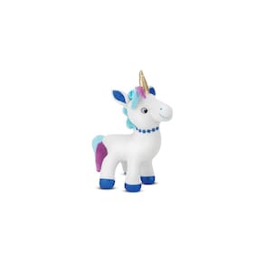 Idade Mínima: 3 anos. Medida: 34 cm. Peso: 170 g. Antialérgico confeccionado com fibra siliconada. Produto 100% nacional. Selo de inspeção INMETRO. Lavável à mão. Cor: Branco com Azul. Posição: Em Pé. Esse lindo unicórnio de pelúcia, faz parte das melhores brincadeiras da criança e irá proporcionar alegria e sorrisos de quem é especial para você. Excelente para decoração, ótimo para presentear. CE-BRI/IQD 006201. NM 300/2002 - OCP 006
