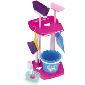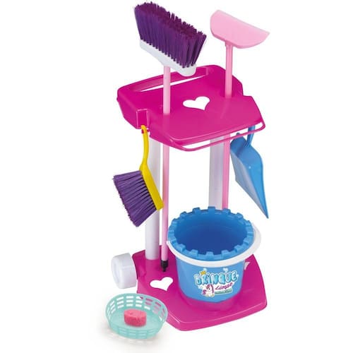 Contém: 1 carrinho, 1 vassourinha, 1 pazinha, 1 rodinho, 1 espanador, 1 lixeirinha, 1 cestinha e 1 esponjinha.