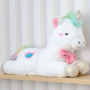 Unicórnio Star Pelúcia Macia Antialérgica c/ Luz e Som Buba O unicórnio star da buba é uma pelúcia com luz e som. é só apertar o botão no coraçãozinho para sentir a magia do unicórnio. Com Luz, som, detalhes coloridos e brilhantes, é um companheiro inseparável para o pequeno. Composição: Pelúcia 100% poliéster Caixa e som acrilonitrila butadieno estireno (abs) Eletroduto policloreto de vinila (pvc).