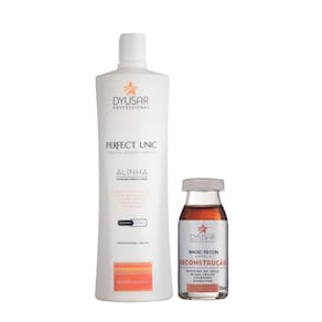 Escova Progressiva Orgânica Unicplastia 1 Litro - Dyusar Professional Hair Descrição: A Escova Progressiva Orgânica Dyusar proporciona hidratação profunda, controle do frizz e aumento do brilho dos cabelos. Sua fórmula contém: Extrato de Quiabo: Hidrata e amacia, eliminando o frizz. Óleo de Pracaxi: Protege e controla o volume, melhora a penteabilidade e combate a queda capilar. Lumini System: Reduz o frizz e o volume, protege a cor dos cabelos tingidos. Ácido Lático: Reforça a fibra capilar e promove reconstrução profunda. Colágeno: Reforça e repara cabelos agredidos, deixando-os macios e brilhantes. Modo de Uso: Divida o cabelo em quatro partes. Aplique mecha a mecha, aguarde de 1 a 1h30. Enxágue e seque completamente. Pranchar mechas finas de 20 a 25 vezes a 230C. Enxágue novamente. Precauções: Uso externo. Evite ingestão e contato com os olhos. Mantenha fora do alcance de crianças. Em caso de irritação, suspenda o uso. Número de Processo: 25351.510416/2020-34 Ampola De Reconstrução Magic Recon 15ml - Dyusar Professional Hair Descrição: Ampola ideal para restaurar a estrutura dos cabelos, proporcionando uma reconstrução completa. Ingredientes e Benefícios: Proteína do Trigo: Restaura a flexibilidade natural dos cabelos. Ácido Lático: Reforça a fibra capilar e proporciona reconstrução. Colágeno e Queratina: Reconstroem a fibra capilar, proporcionando resistência e brilho. Modo de Uso: Misture com água até formar um creme consistente. Aplique nos cabelos úmidos após lavagem, deixe agir de 3 a 10 minutos e enxágue. Precauções: Uso externo. Manter fora do alcance de crianças. Evitar contato com os olhos; em caso de contato, enxaguar abundantemente com água. Produto aprovado pela ANVISA. Marca: Não Informado Ean: 7898739953796