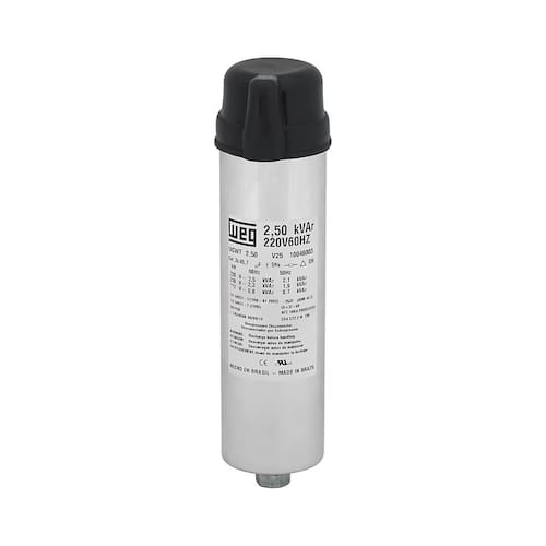 Desenvolvidos a base de filme de polipropileno metalizado auto-regenerativo, possui dispositivo de segurança contra sobre pressão interna e baixas perdas dielétricas. Resumo das características técnicas Potência reativa 2.0 kVAr Tensão nominal Ue 220V60Hz Frequência 60 Hz Tipo do terminal Parafuso Série D código: 10046002 Série D Capacitância ligação delta 36.6 F Tolerância da capacitância 5% Expectativa de vida 100.000 h Classe de temperatura -25/D Capacidade de curto circuito 10 kA Conexão da resistência de descarga Interno Material de preenchimento Resina poliuretana Máxima tensão 1,3 x Vn Grau de proteção IP50 Peso bruto 0,594 kg Ean: 7890355041680