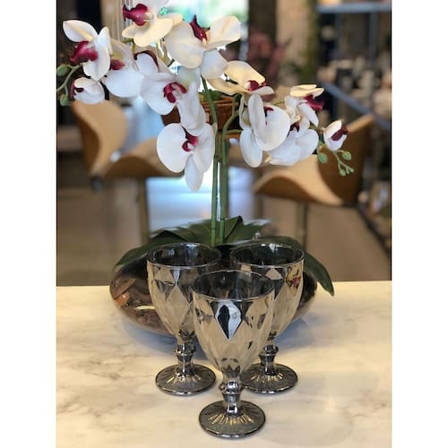 Belíssima unidade de taças fabricada em vidro de alta qualidade, resistente, de perfeito acabamento e fácil limpeza.As peças são todas elaboradas com lindos detalhes, possui uma base elevada que garante mais elegância ao seu design.Toda decorada com losangos em relevo brilhantes como diamantes. Excelente para quem procura qualidade, beleza e personalidade à mesa posta.Ideal para água ou até mesmo sucos. Além de ser usada em diferentes ocasiões. Serve para dar um toque a mais de charme como peça de decoração