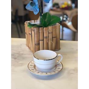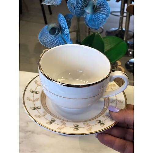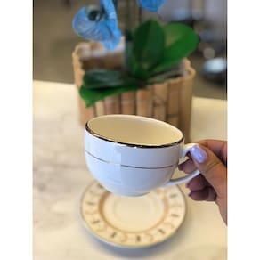 Unidade de Xícara de Chá com Pires em Cerâmica Filete de Ouro 250ml - AlleanzaXícaras de Chá com Pires em Cerâmica Filete de Ouro é a peça perfeita pra levar sofisticação, elegância e exclusividade para sua mesa posta.A Alleanza Cerâmica, com sede na cidade de Porto Ferreira é uma empresa focada na fabricação de louças voltada para a mesa posta. A empresa nasceu com intuito de oferecer ao mercado nacional e internacional produtos diferenciados. Após pesquisa de campo na Europa, resolveram trazer para o Brasil a mais alta tecnologia em equipamentos sendo, pioneira em peças produzidas em prensa hidráulica vertical, o que garante um resultado com maior uniformidade de peso, espessura e qualidade incomparável.Inspirados por essas valiosas ideias, desenvolveram o projeto e hoje a Alleanza se destaca na produção cerâmica oferecendo produtos líderes em qualidade e resistência, gerando sempre oportunidades de negócios para empresas e valor compartilhado com a sociedade. Também buscam conciliar desenvolvimento econômico e preservação do meio ambiente. Acreditam em práticas sustentáveis e investem em avançados sistemas de aproveitamento de recursos naturais. Medidas:Altura: 6cmLargura: 10cmComprimento: 10cm