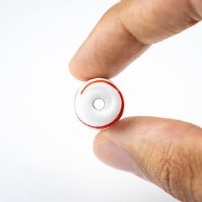 Formato de azeitona com furo passante no meio
