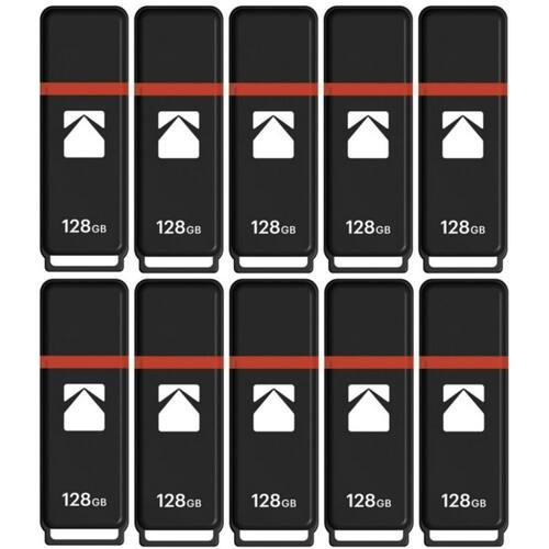 Unidade flash USB 2.0 de 128 GB compatível com tampa e corpo da série Kodak Classic K100 com velocidade de leitura de até 15 MB/s e velocidade de gravação de até 5 MB/s (pacote com 10)