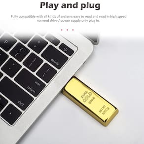 Capacidade de armazenamento: 1 unidade flash USB de 64 GB. Memory Stick realista em forma de barra dourada, novidade e pen drives divertidos para armazenamento de dados. Design externo interessante, leve e portátil. Compacto e resistente, sua estrutura de metal garante resistência a choques, e o chip Classe A garante uma transmissão de dados estável e rápida. Adequado para armazenamento, transmissão e compartilhamento de dados. Incluindo música, fotos, filmes, arquivos de vídeo, arquivos de trabalho, programas, apresentações, apostilas de aprendizagem e muito mais. Plug and Play. Não é necessário instalar nenhum software. Conexão USB 2.0. Compatível com Windows 7/Windows 8/Windows 10, MacOS/Linux, etc. Compatível com todos os dispositivos com portas USB-A, como desktops, laptops, tablets, TVs, alto-falantes. Dicas sobre a capacidade do pen drive: O fabricante da unidade flash USB usa um método de cálculo decimal para indicar a capacidade de armazenamento da unidade flash, que é de 1 GB = 1000 MB. Mas no mundo dos computadores, a capacidade de armazenamento é calculada em binário, 1 GB = 1024 MB. Portanto, existem algumas diferenças entre a capacidade de exibição e a capacidade listada do produto de memória flash: 32 GB listados são cerca de 29 GB-31 GB no PC, 64 GB listados são cerca de 58 GB-60 GB, 128 GB listado é de cerca de 116 GB-123 GB Se você tiver alguma dúvida, . Obrigado - Capacidade de armazenamento: 1 unidade flash USB de 64 GB. Memory Stick realista em forma de barra dourada, novidade e pen drives divertidos para armazenamento de dados. - Design externo interessante, leve e portátil. Compacto e resistente, sua estrutura de metal garante sua resistência a choques, e o chip Classe A garante uma transmissão de dados estável e rápida. - Adequado para armazenamento, transmissão e compartilhamento de dados. Os tipos de arquivos compatíveis incluem música, fotos, filmes, arquivos de vídeo, arquivos de trabalho, programas, apresentações, apostilas de aprendizagem e muito mais. - Plug and Play. Não é necessário instalar nenhum software. Conexão USB 2.0. Compatível com Windows 7/Windows 8/Windows 10, MacOS/Linux, etc. - Compatível com todos os dispositivos com portas USB-A, como desktops, laptops, tablets, TVs, alto-falantes, etc.