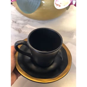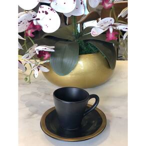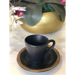 Surpreenda os seus convidados com esta elegante xícara com pires para chá da linha amassada, feito de cerâmica de altíssima qualidade nacor preto e detalhes em dourado. De linhas clássicas e design requintado, esta peça dará um toque deglamour ao servir o seu chá.