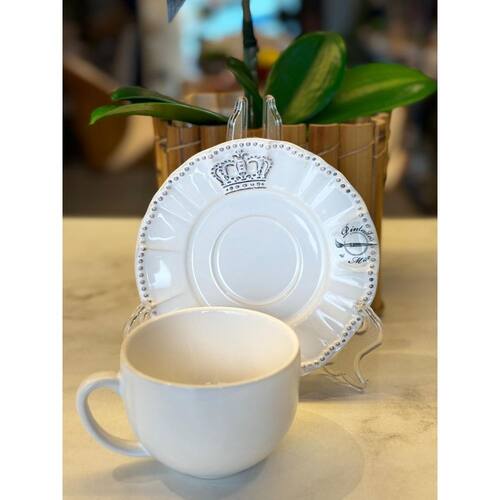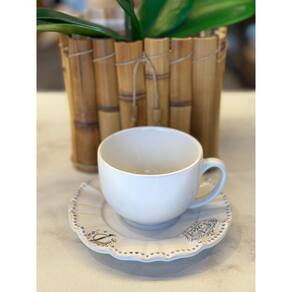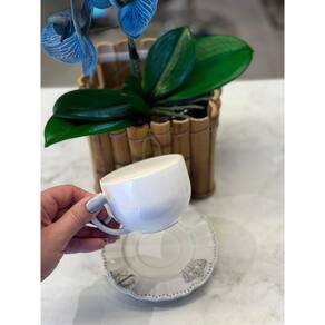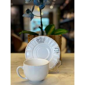 TAMANHO: - Xicara: 7cm (altura) x 9,5cm (diâmetro) - Pires: 15,5cm x 1,5cm. INFORMAÇÕES: - Resistente a microondas e lava-loucas. COMPOSIÇÃO: - Cerâmica Feldspática de alta qualidade. Contem 1 xicara e 1 pires