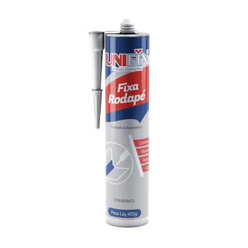 Unifix Fixa Rodapé 455Gn Unifix Fixa Rodapé desenvolvido especialmente para fixação de elementos construtivos como rodapés em madeira ou PVC e outros acabamentos na construção civil. Sua formulação foi especialmente desenvolvida para resistir ao envelhecimento além de proporcionar uma excelente adesão sem a necessidade de utilizar primers, pode ser lixado e pintado. Unifix Fixa Rodapé não é corrosivo e é isento de solventes, sendo fácil de manuseio, tem boa adesão e pode ser aplicado em diversos substratos, tais como: - Concreto - MDF - PVC - Alvenaria - Poliestireno - Gesso