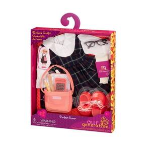 Este conjunto é nota 10! As bonecas Our Generation adoram aprender o máximo de coisas novas que podem! Vista suas bonecas com este adorável uniforme escolar que apresenta uma roupa clássica de volta às aulas e acessórios de escola de bonecas em miniatura. O vestido xadrez macio tem uma camisa branca de botão embutida e meias brancas combinando. Suas bonecas terão uma combinação de cores A+ com a bolsa rosa e os tênis na mesma cor. Os tênis também têm cadarços reais que você pode amarrar em um laço! Os óculos, régua, lápis e calculadora garantirão que suas bonecas tenham tudo o que precisam para tirar ótimas notas em suas tarefas da Escola Our Generation (vendida separadamente). O que você e suas bonecas vão aprender hoje?! Boneca vendida separadamente.