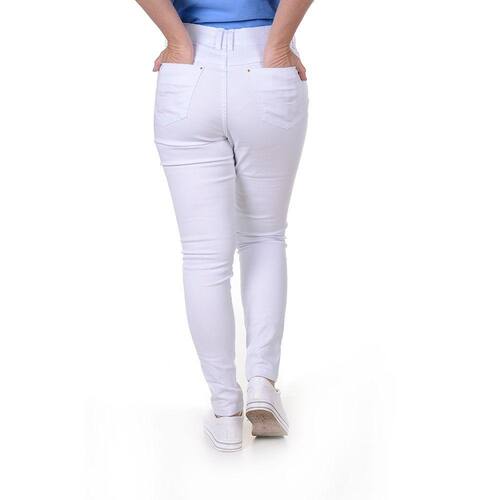 Especificações: Uniforme Feminino: Calça Skinny Cintura Alta Tecido de Brim - Branca