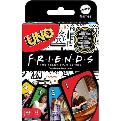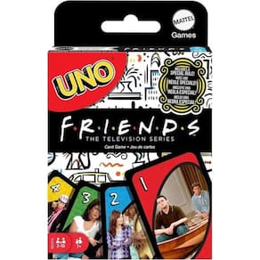 O jogo UNO que os jogadores conhecem e adoram apresenta decorações com os personagens do popular programa de televisão Friends! O jogo corresponde ao clássico jogo de cartas em que os jogadores combinam cores e números para se livrar de todas as cartas. A regra especial "Aquele em que você compra", força os oponentes a sacarem até encontrar o amigo correto. Quando os jogadores ficarem com apenas uma carta, eles devem gritar "UNO!". O jogo de cartas colecionáveis é um ótimo presente para os fãs de Friends.\n\nIdade recomendada:5-7 anos;Composição/Material:Papél;Funciona com pilhas:Não;Brinquedo com luz:Não;Brinquedo com som:Não;Dimensões:13,7x10x2 cm;Peso:0,172 kg;Código de Barras:194735086177;Garantia do Fornecedor:3 Meses contra defeito de fabricação;