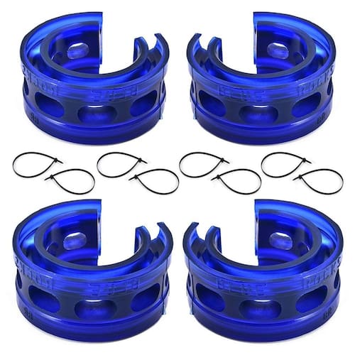aumenta estabilidade em curvas. Aumenta a altura do veiculo em até 2cm. Diminui impactos e vibrações. Diminui a distância na frenagem. Fabricado em poliuretano. Fixado por encaixes e presilha de fixação. Conteúdo da embalagem: