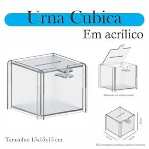 Urna Acrílico Sorteio Caixa Sugestões Cubo Cofre 15 X 15 Cm