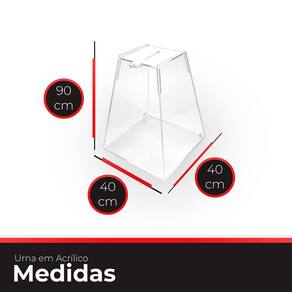 Modelo: 3mm Material: Acrílico Cristal Dimensões: Base 40cmX40cm - Altura 90cm - Tampa 25cmX25cm Peso: 5,700 Marca: GP Laser